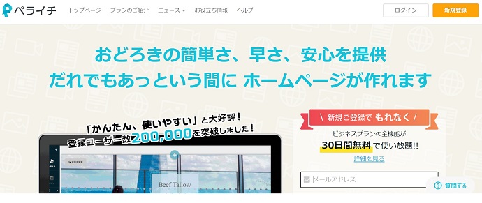 ホームページではなくランディングページを作りたい場合は、ペライチが最も作りやすいサービスです。